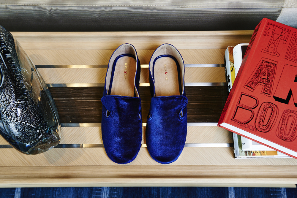 The critically acclaimed fashion designer created a limited edition of luxury slippers, available exclusively at Shangri-La Hotel, At The Shard, London. Featured in Financial Times Weekend “Worth It“ Section and Harper’s Bazaar “Fashion Find of the Day”.